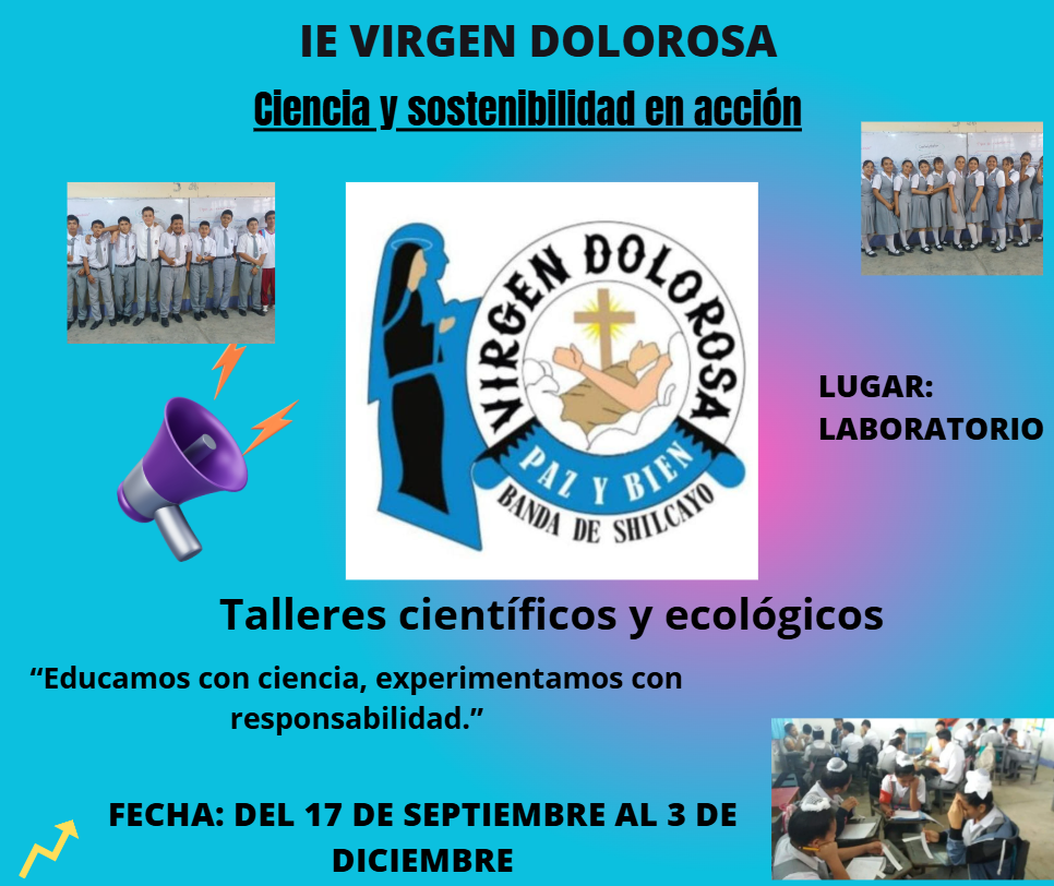 Ciencia y sostenibilidad en acción: estudiantes de la I.E. Virgen Dolorosa innovan con talleres experimentales y ecológicos I.E. Virgen Dolorosa La Institución Educativa Virgen Dolorosa viene desarrollando una serie de talleres prácticos y demostrativos que integran ciencia, tecnología y responsabilidad