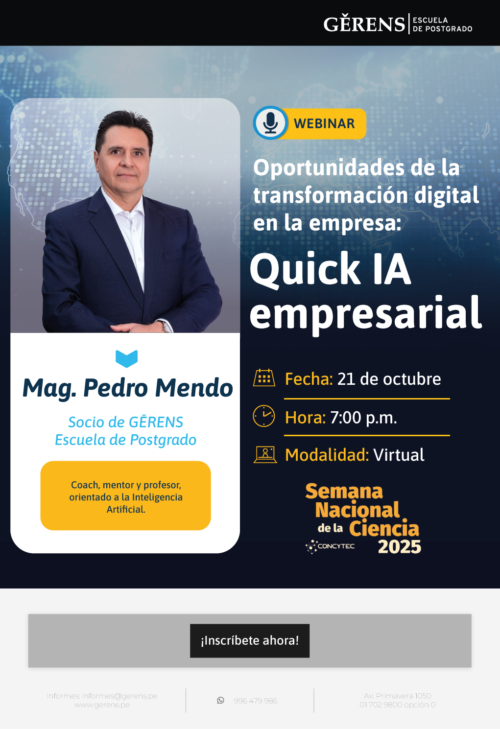 GĚRENS participará como escuela invitada en el ciclo de webinars CTI – CONCYTEC, reafirmando su compromiso con la ciencia, tecnología e innovación GĚRENS Escuela de Postgrado Lima, octubre de 2025. – GĚRENS Escuela de Postgrado ha sido invitada por el