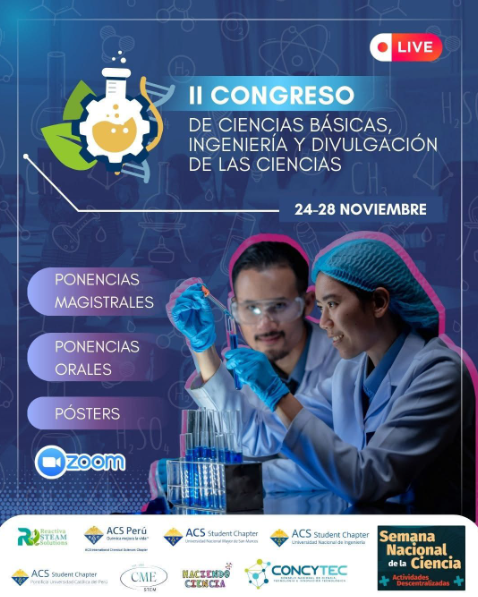 ACS Perú anuncia el II Congreso de Ciencias Básicas, Ingeniería y Divulgación de las Ciencias ACS Perú La ciencia se conecta: II Congreso de Ciencias Básicas, Ingeniería y Divulgación de las Ciencias La American Chemical Society (ACS) Perú, junto a
