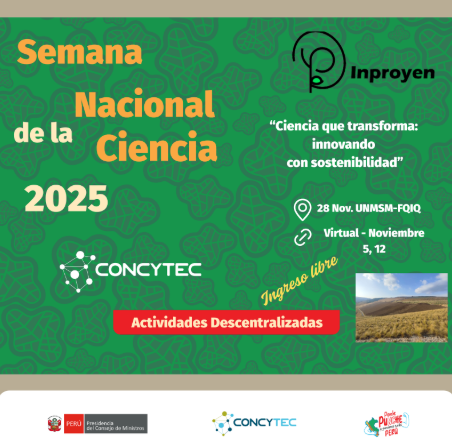 Inproyen Consulting – Semana de la ciencia 2025 | Actividades el 5, 12 y 28 de noviembre En el marco de la Semana de la Ciencia 2025, Inproyen Consulting S.A.C. presentará una serie de actividades orientadas a promover la investigación