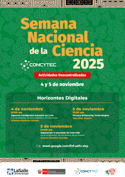 La Salle presenta ponencias sobre IA y eficiencia digital en la Semana Nacional de la Ciencia 2025 Universidad La Salle En el marco de la Semana Nacional de la Ciencia 2025, organizada por el Consejo Nacional de Ciencia, Tecnología e